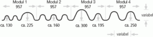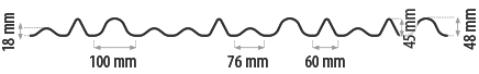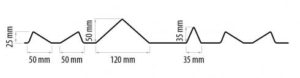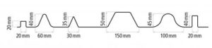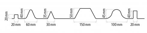 a několik řad lemovacích a ukončovacích profilů. Je možné vyrobit zakružené, konické i jinak upravené profily. Výšky a šířky vln profilů na přání.
